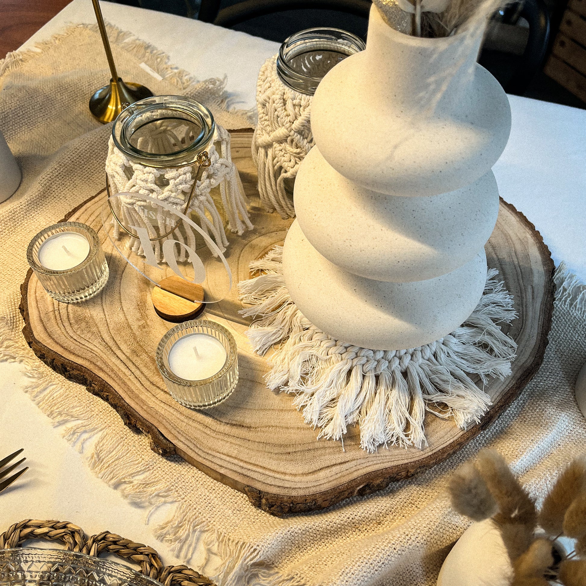 Verleiht euren Hochzeitstischen eine natürliche Atmosphäre mit unseren ausgewählten Baumscheiben. Diese natürlichen Schönheiten bringen rustikalen Charme und eine Prise Natur, direkt auf eure Tische. Ideal für Paare, die ein Hauch von Natur in ihren besonderen Tag einfließen lassen möchten.